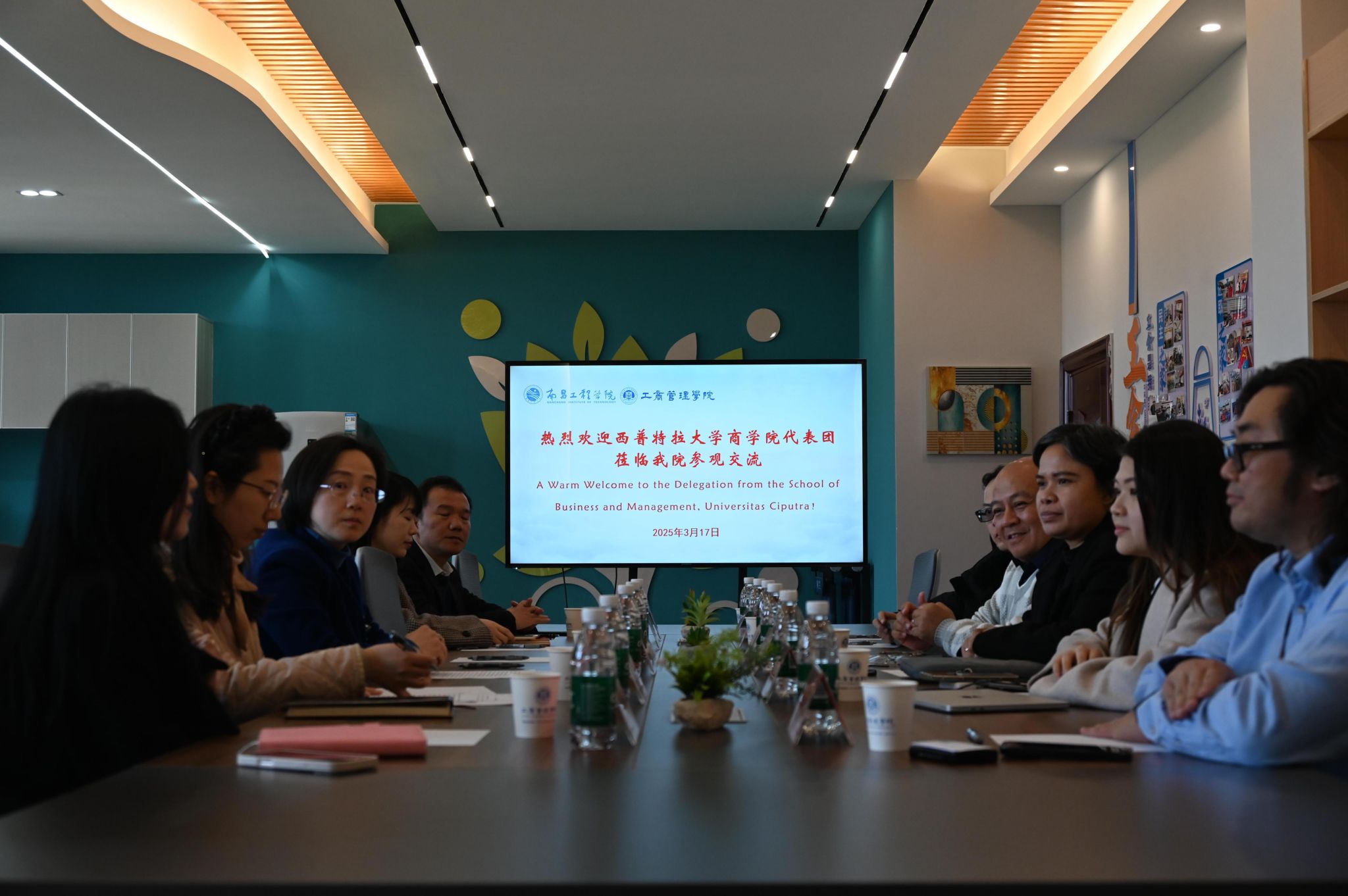 座谈会上,胡杨成介绍了我院办学历史、办学特色、人才培养、师资力量及近年来取得的教学科研成果。Damelina B Tambunan介绍了Ciputra大学商学院的办学理念、国际化战略及商科教育的特色,并表达了建立合作关系的意愿。双方参会人员围绕学生交换、教师互访、共同开展项目研究等合作形式进行了交流。此外,双方还就课程设置、教学方法、实习实践等议题交换了意见。座谈会后,Ciputra大学商学院代表团一行在肖斯敏副书记陪同下,考察了工商管理学院的教学设施、实验室及师生工作环境,并就合作细节展开进一步交流。