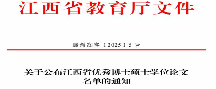 近日,江西省人民政府学位委员会、省教育厅公布了2023、2024年全省优秀博士硕士学位论文名单。我院苏志雄教授指导的管理科学与工程学术型硕士学位论文(第一届毕业生)获评省优秀硕士学位论文。