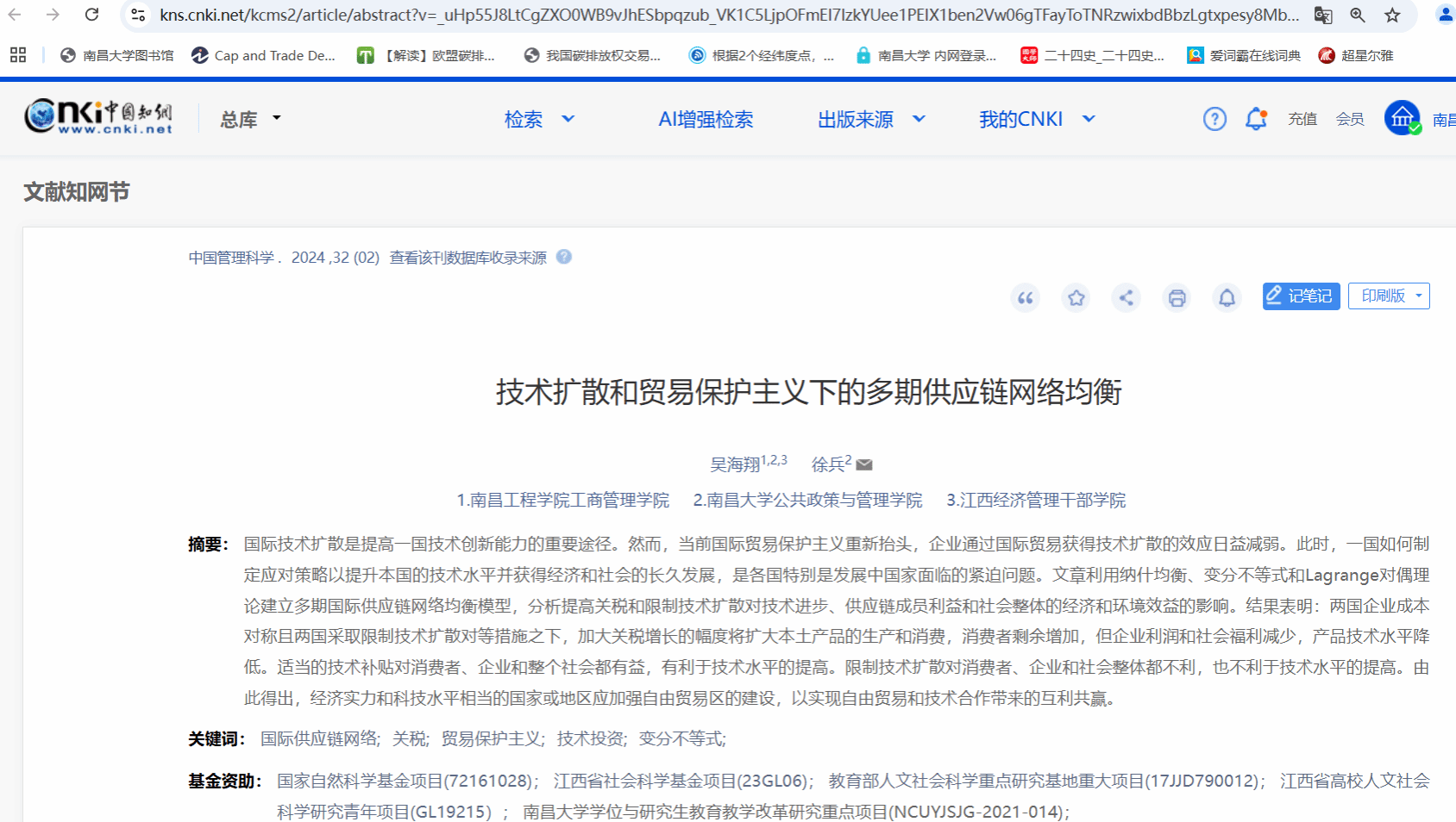 2024年2月,吴海翔博士在国家自然科学基金委认定的A类期刊《中国管理科学》发表一篇题为《技术扩散和贸易保护主义下的多期供应链网络均衡》的学术论文。