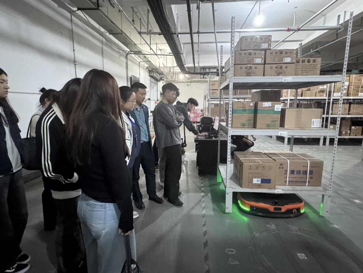 在企业负责人带领下,师生实地考察智能立体仓库、自动化分拣中心等核心区域,通过观摩堆垛机精准取货、AGV机器人自动转运、数字化分拣系统高效作业等流程,系统了解医药物流"验收-存储-分拣-配送"各环节标准化操作规范及智能化技术应用。座谈会上,师生就"医药物流温控管理标准""智能仓储成本控制逻辑""多级仓网布局仿真"等问题进行深入交流,企业负责人结合实际案例逐一解答,并就行业发展趋势及人才需求方向提出指导意见,为学生职业规划提供有力支撑。