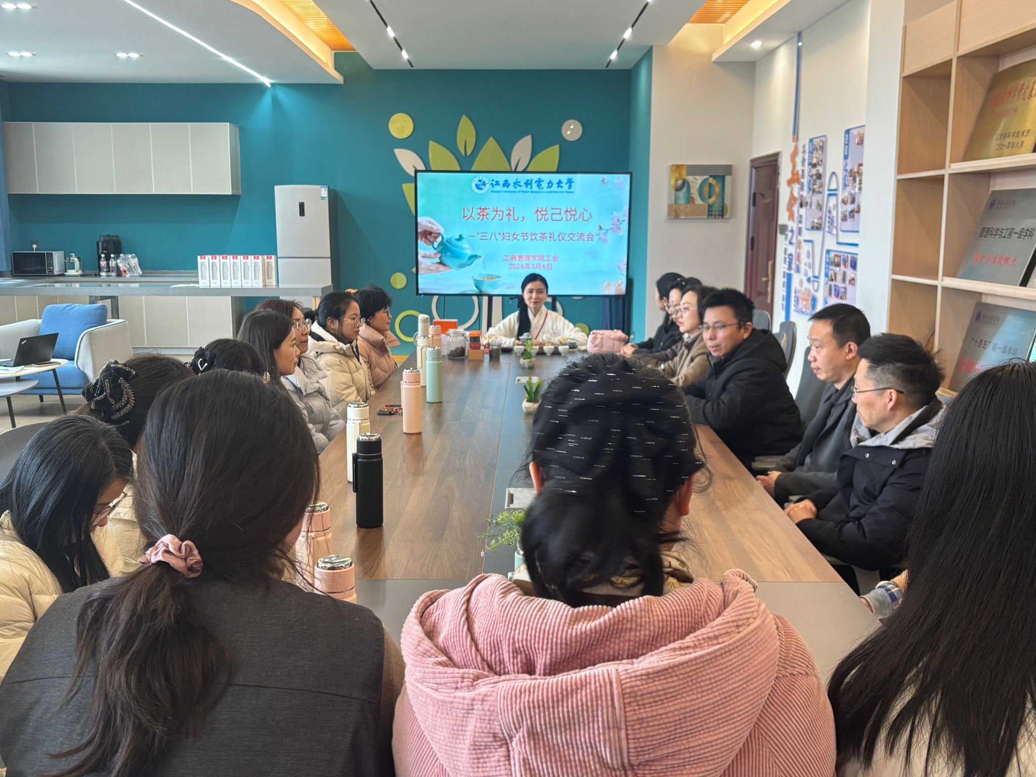 一缕茶香,穿越千年;一份礼仪,连接你我。3月6日下午,我院在济民楼A402教工之家举办“以茶为礼,悦己悦心”“三八”妇女节饮茶礼仪交流会。本次活动由院党委副书记、院工会主席肖斯敏主持,邀请了黄文珺老师主讲,全院40余名女教职工参加,院领导班子出席并送上美好祝福。