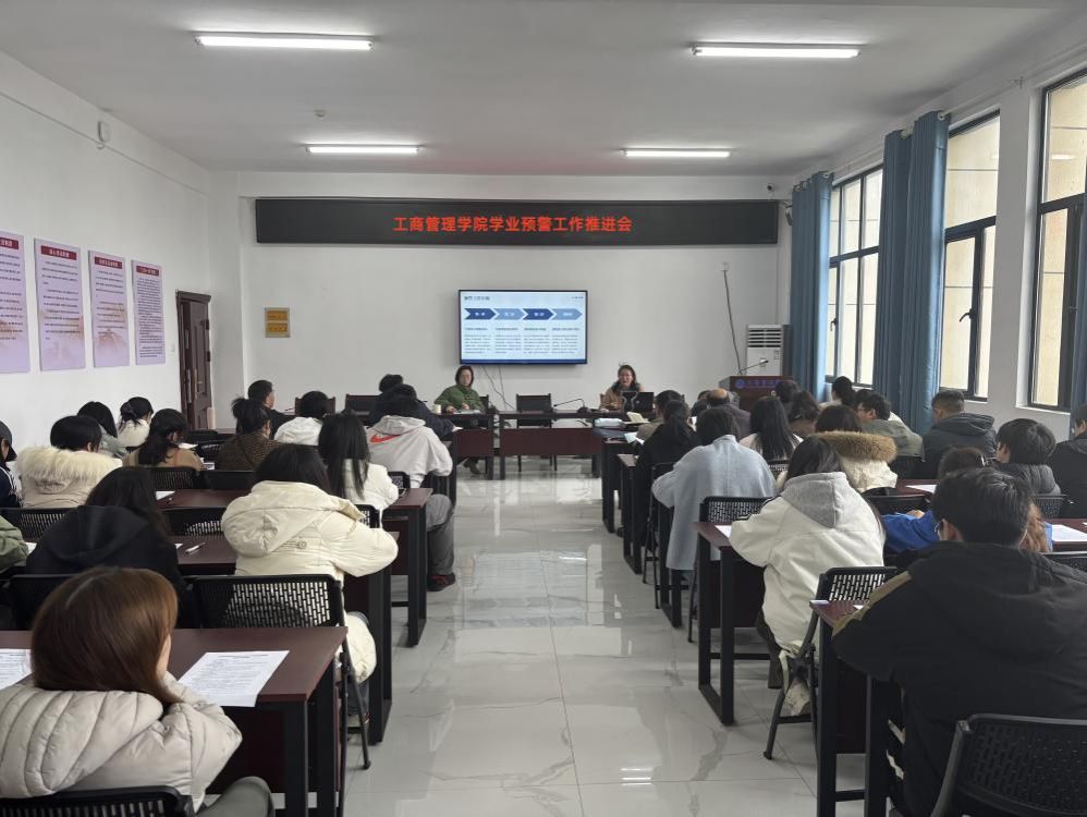 为进一步加强学院学风建设,提高学生对学业的重视程度,做好学生的促学和督学,核实统计学业预警工作数据,推进学业困难学生帮扶工作落到实处,3月17日中午,工商管理学院在济民楼A412召开了2026年学业预警工作推进大会。学院党委副书记肖斯敏、教学副院长谢杰华、教务办、学工办、班主任以及相关班学委参加了此次会议,会议由肖斯敏主持。