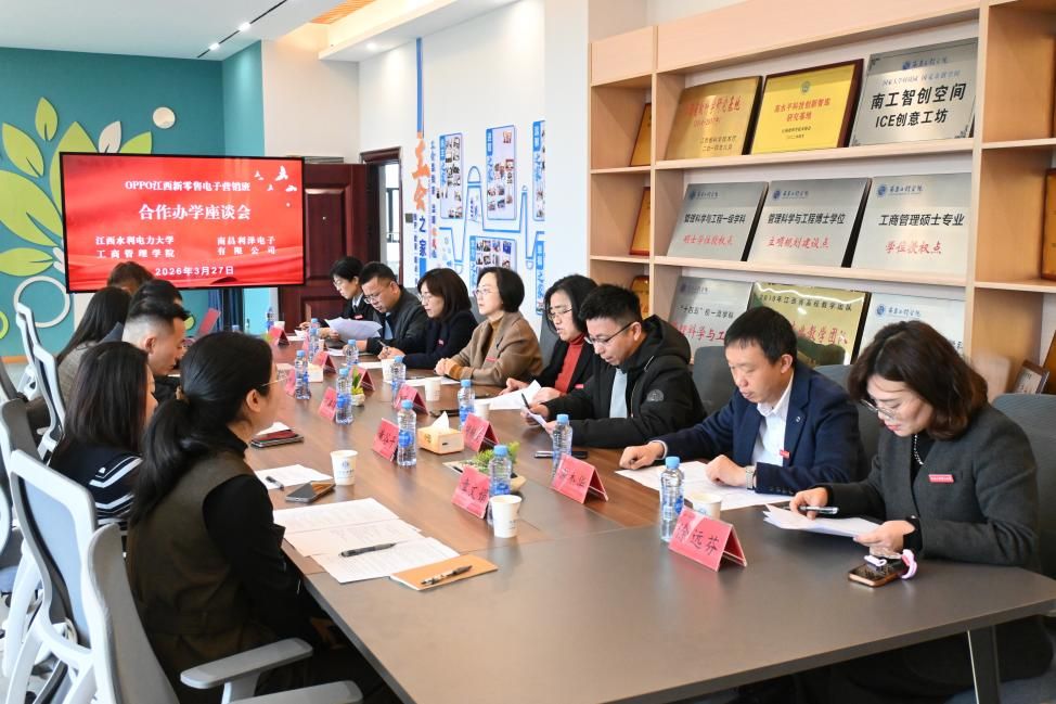 3月27日,我校与南昌利泽电子有限公司校企合作办学签约暨“OPPO江西新零售电子营销班”揭牌仪式,在行政楼336会议室顺利举行。校党委委员、副校长周仲魁,OPPO中国区人力资源部部长叶梁,OPPO中国区零售中心资深HRBP黄谷子,南昌利泽电子有限公司总经理胡建强、零售总经理刘雅兰、人力资源经理章文娟、体验店经理陈杰出席仪式。我校教务处、工商管理学院相关负责人及市场营销教研室教师代表参加活动。
