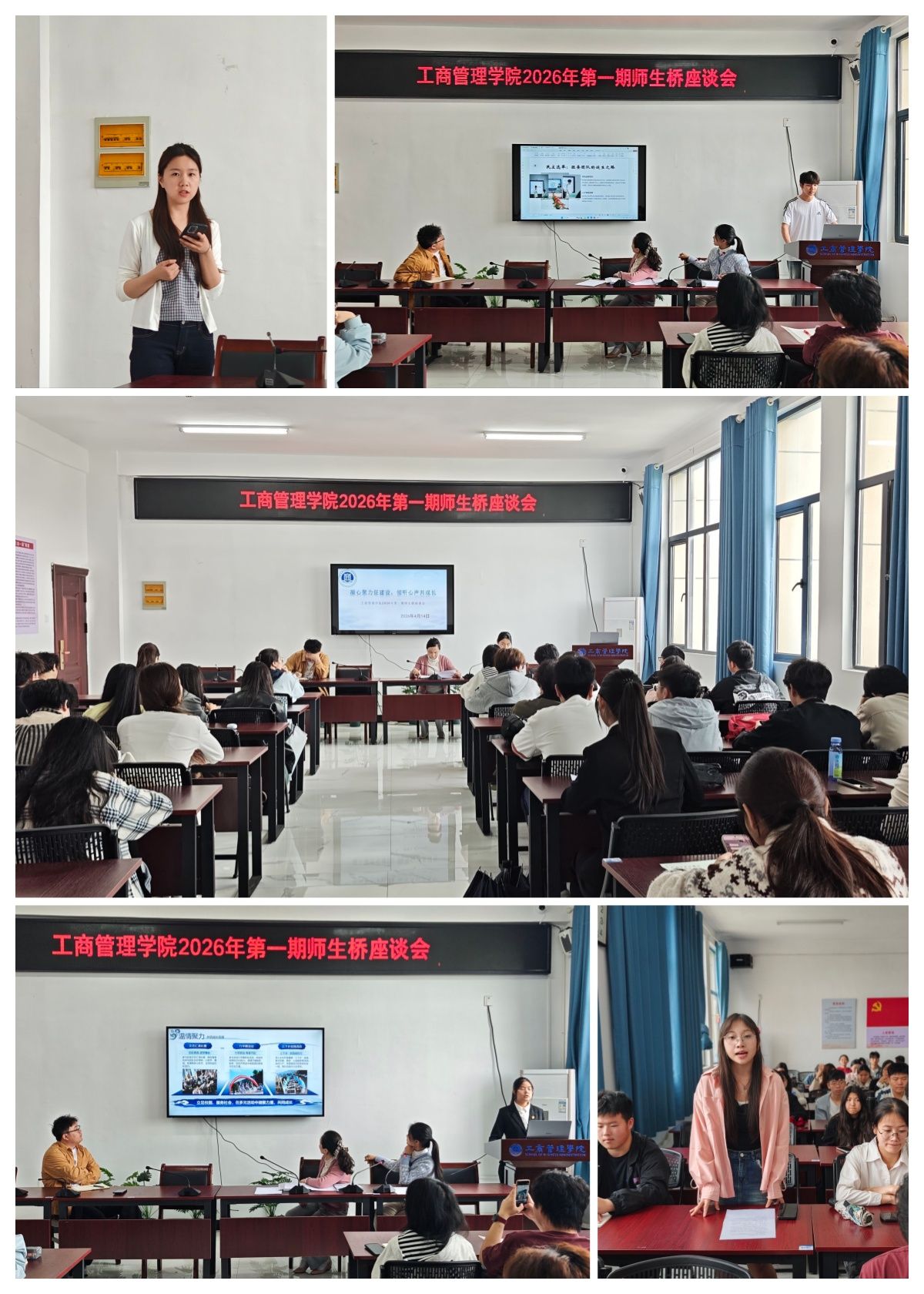 近日,我院在济民楼A412会议室召开2026年第一期“师生桥” 座谈会。学院学工办主任朱旭琼、辅导员代表、院团学组织主席团成员及2024 级、2025级各班班长、团支书、学生代表60余人参会,围绕班级建设、骨干成长与学生诉求开展深入交流。
