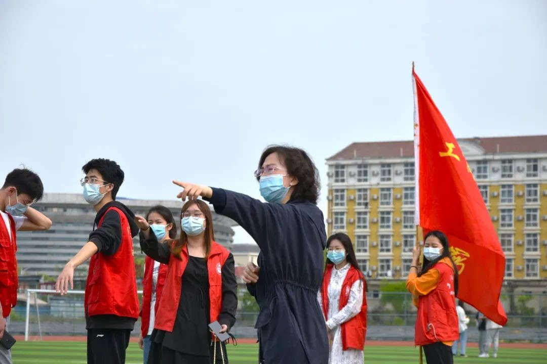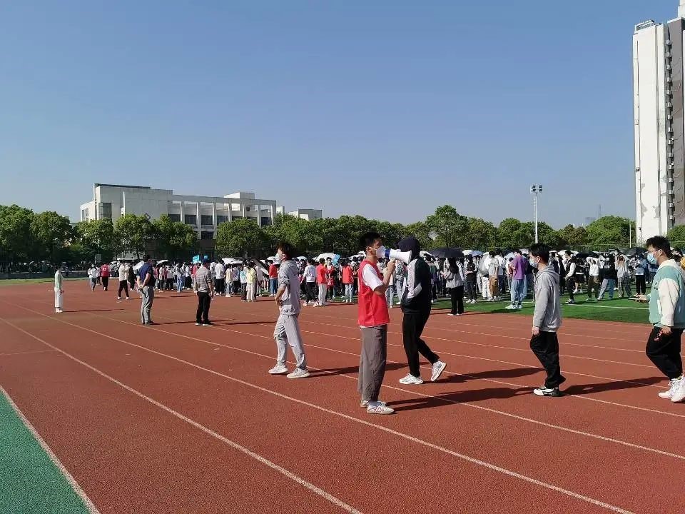 在检测开始之前,肖斯敏与龙倩带领党员志愿者来到了校医院北面的运动场,组织同学们有序排队,依次进行核酸检测。