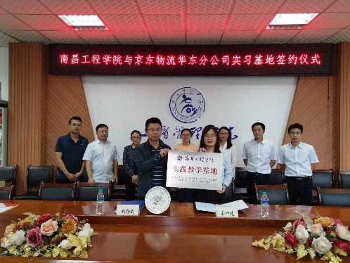 5月18日下午,南昌工程学院工商管理学院与京东物流华东分公司共建实践教学基地的签约仪式在教学北楼A510会议室举行。工商管理学院院长胡杨成,物流管理教研室主任童心以及京东物流华东分公司人力资源经理王一凡出席签约仪式。