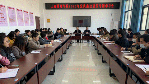 近日,工商管理学院2023年党风廉政建设专题学习会在济民楼A412召开,学院全体院领导班子成员、专职教师参加,会议由党委书记高明主持。