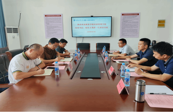 会上,高明对新余学院经济管理学院的到访表示欢迎,希望双方借助此次座谈,深入交流、相互学习,推动工作上台阶,并从党建引领、学院架构、内部管理、队伍建设等方面介绍了学院基本情况。胡杨成、嵇国平分别对学院发展史、专业建设、学科建设与新一轮本科教育教学审核评估工作的相关情况进行了简要介绍。王茂洋对经济管理学院的党建工作、专业建设与学科建设等相关情况进行了介绍。