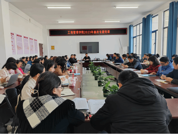 近日,工商管理学院党委在济民楼A412党员活动室组织开展了2023年党风廉政教育专题党课,党课由学院党委书记高明主讲,学院全体领导班子成员、教职工党员和入党积极分子参加。