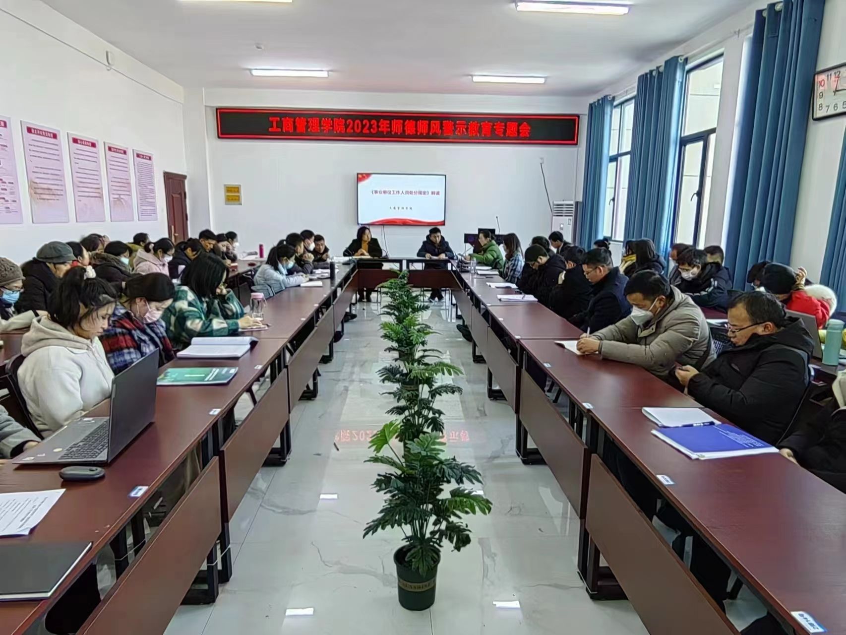 为进一步加强师德师风建设,规范党员干部职工行为,提升教职工履职能力。近日,工商管理学院在济民楼A412召开了师德师风警示教育专题会,组织全体教职工认真学习新修订的《事业单位工作人员处分规定》。