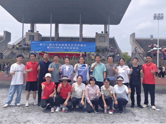 4月27日,在我校首届水文化运动会上,我院教职工发扬特别能吃苦的精神和默契配合的团队合作精神,展现了高超的团队竞技实力,荣获团队总分全校第3名的好成绩。其中“饮水思源”项目以1分13秒66的优异成绩夺得全校冠军;“滴水不漏”项目完成256次接球获得全校第3名;背水一战”项目获得第6名。