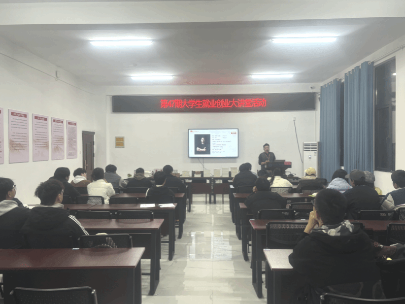近日,由招生就业处主办,工商管理学院举办的第47期“大学生就业创业大讲堂”活动在济民楼A412就业宣讲室开讲。本次活动邀请到了江西华公未来教育科技有限公司副总经理、我校2009级市场营销专业校友刘天昊主讲。辅导员雷巍及在校40余名学生参加此次活动。